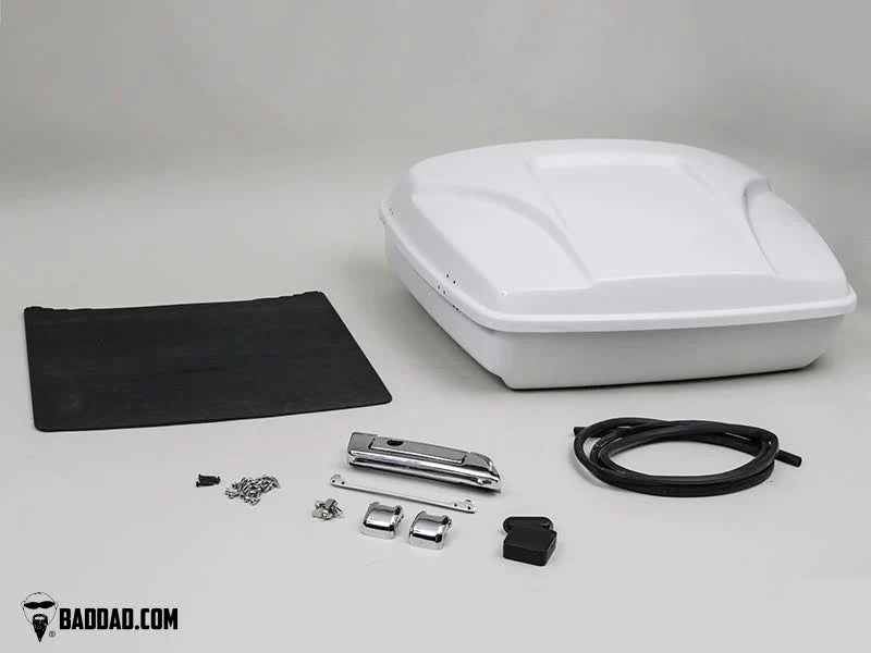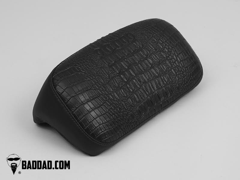 Backrest pad: The Competition Series Tour Pack is designed to use any existing Harley-Davidson pad. You can also add a custom pad to your order with the dropdown menus below. Use the Smooth version to match your stock seat or Bad Dad's Smooth Bagger Seat. Use the Alligator version to match Bad Dad's Alligator Bagger Seat.