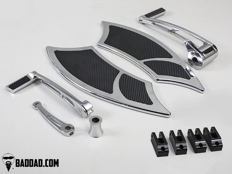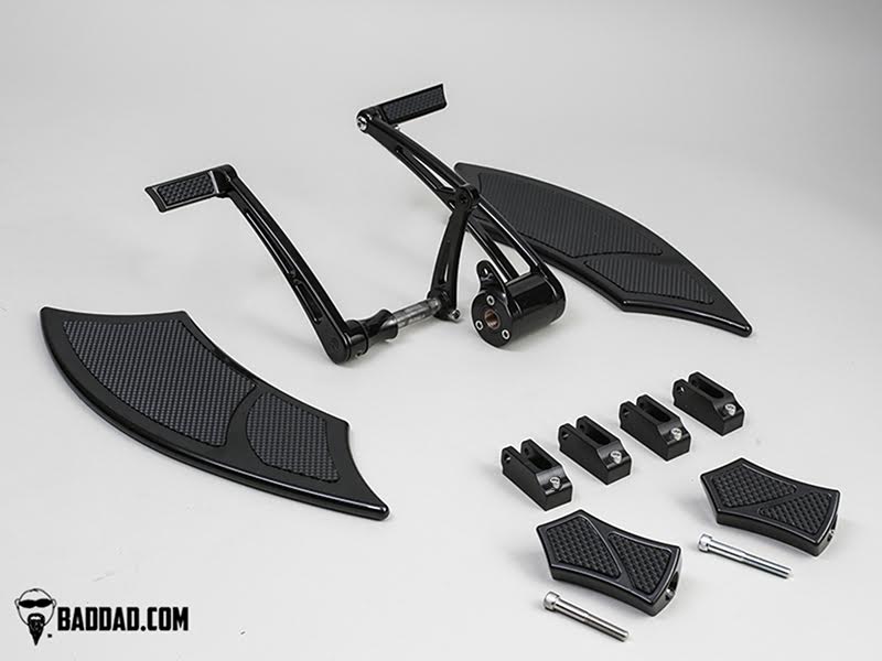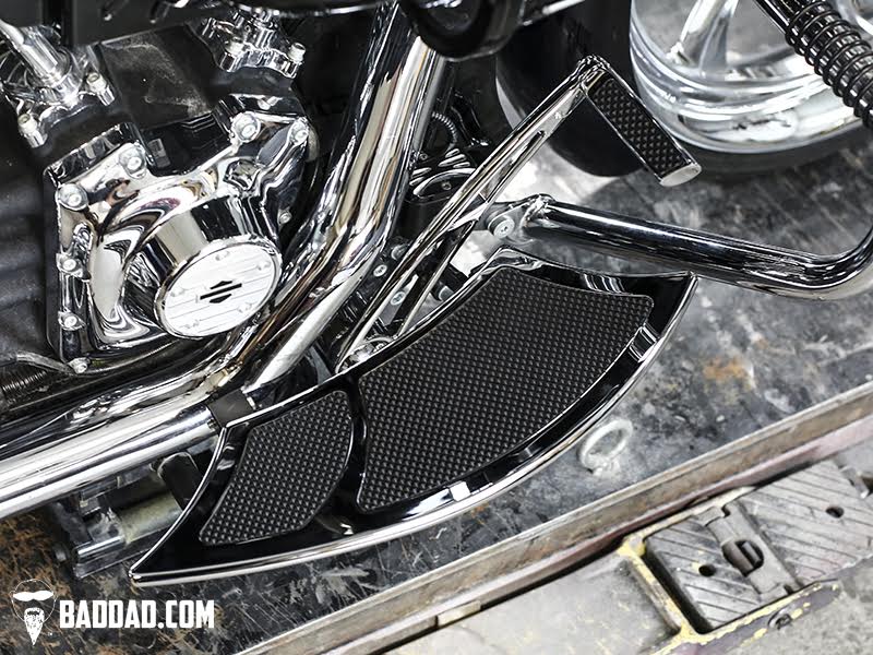 Use this custom floorboard & forward control kit on any Street Glide, Road Glide, Electra Glide, Ultra, Road King, or Softail. All of Bad Dad's custom parts are proudly designed, machined, coated, and packaged in the USA.